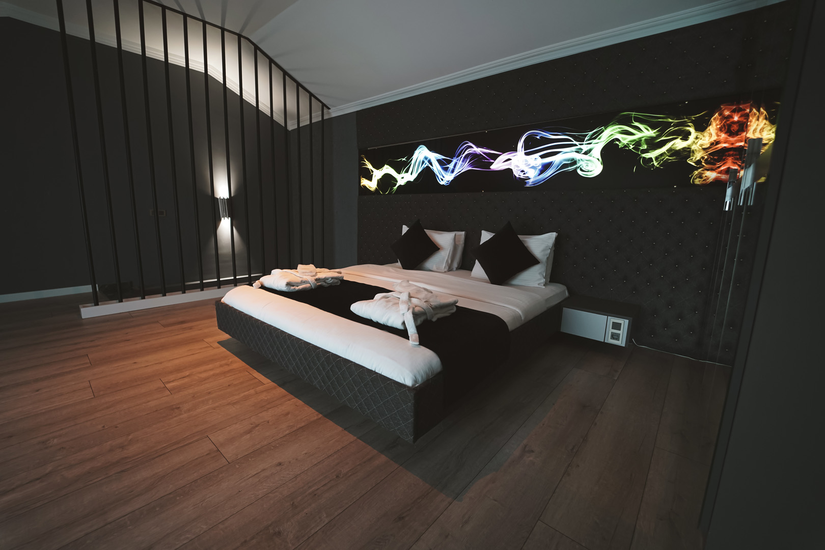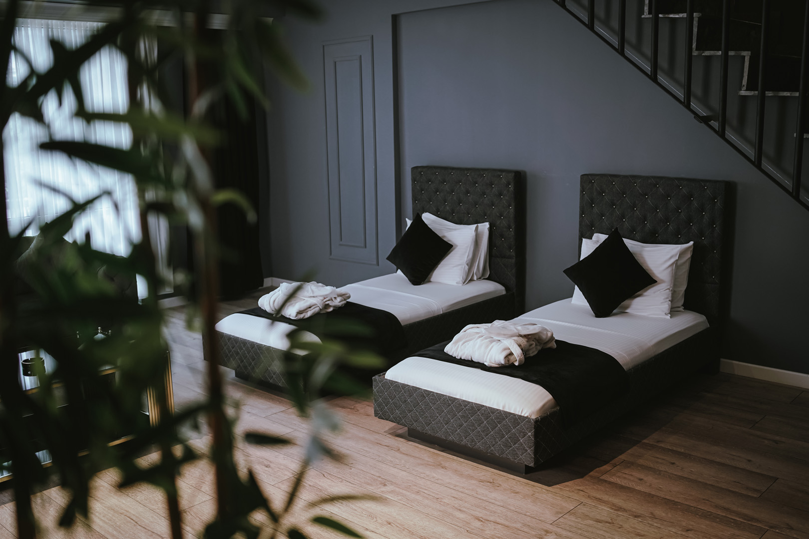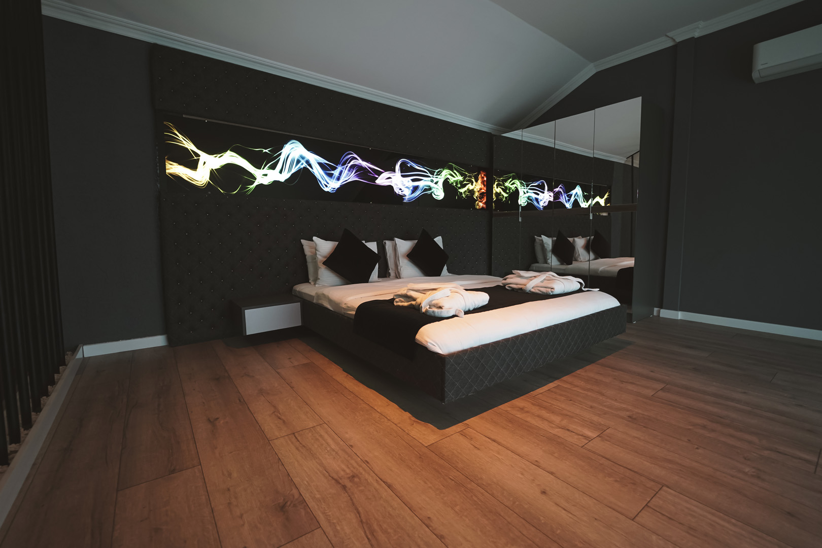 Our rooms with wooden parquet floors feature an extra-long bed, a spacious wardrobe, a comfortable sofa, a dryer, a seating area, and a work desk. Additionally, details such as a vanity table, private entrance, kitchenette, dining area, and dining table bring the comfort of home to our guests.