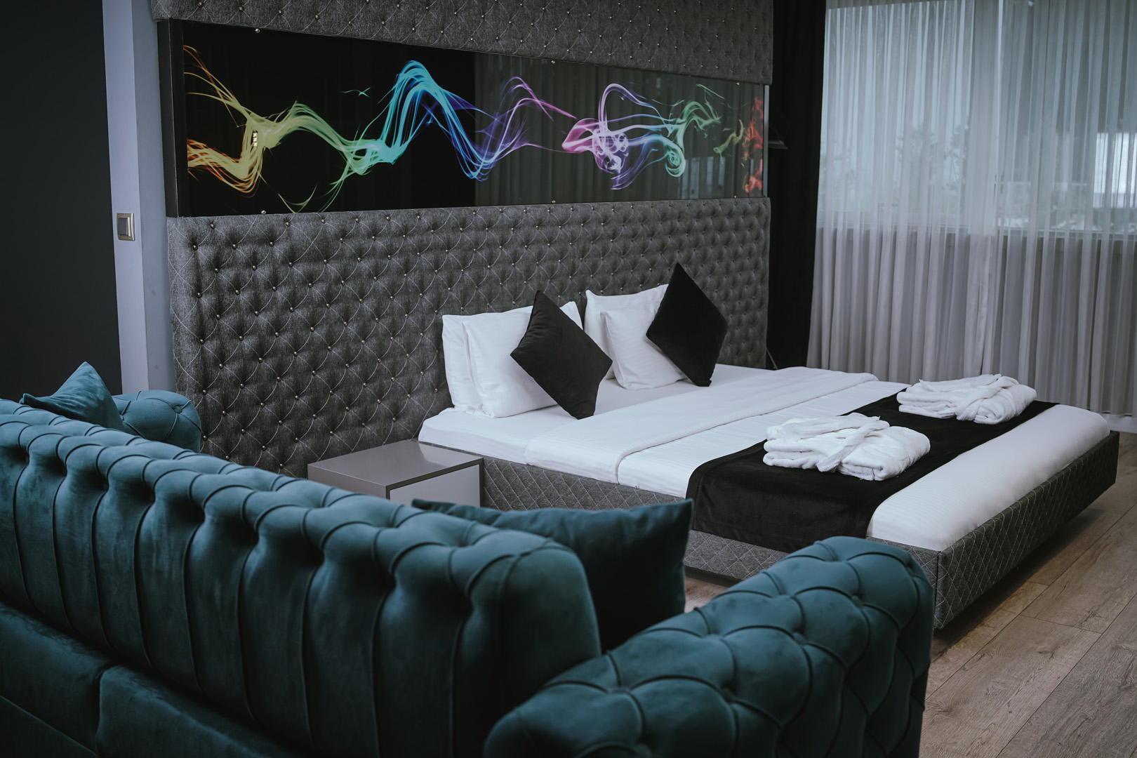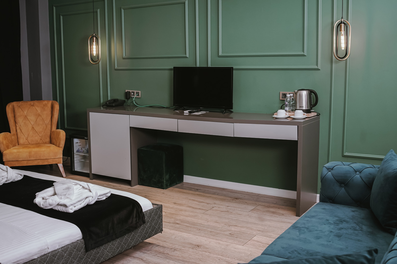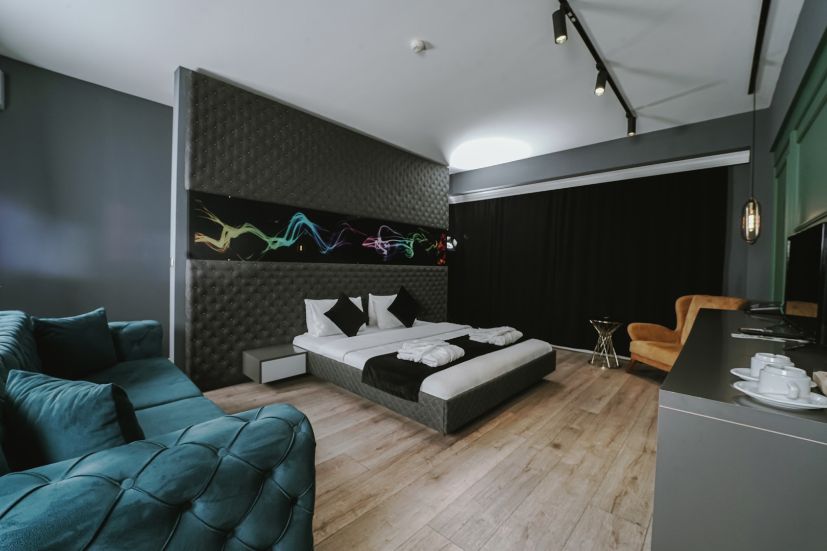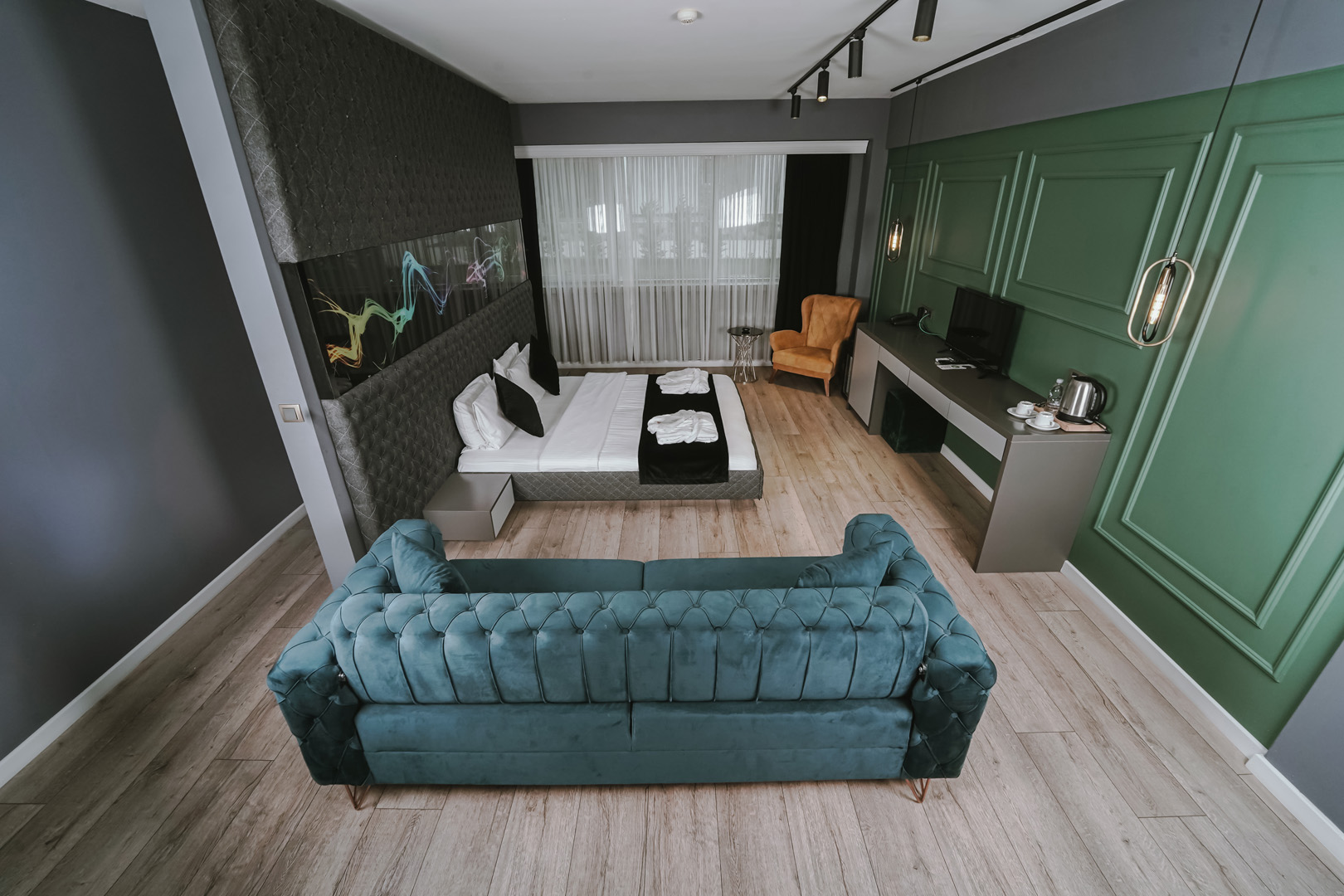 Ahşap parke zemine sahip odalarımızda, ekstra uzun yatak, geniş bir gardırop, konforlu kanepe, kurutucu, oturma grubu ve çalışma masası bulunmaktadır. Ayrıca makyaj masası, özel giriş, mini mutfak, yemek alanı ve yemek masası gibi detaylarla konuklarımıza ev konforunu yaşatıyoruz.